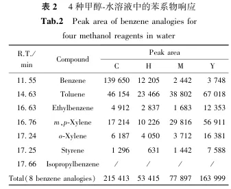 2.2 不同品牌甲醇试剂的苯系物本底情况对比