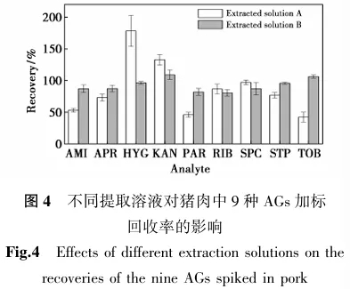 本实验比较了2种洗脱液(洗脱液A:V(甲酸):V(甲醇)=1:10;洗脱液B:V(甲酸):V(水)=1:10和V(异丙醇):V(水)=1:20)对9种AGs回收率的影响。.jpg)