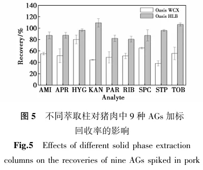 本实验比较了Oasis HLB固相萃取柱(6 mL,500 mg)和Oasis WCX固相萃取小柱(6 mL,500 mg)的净化效果。如图5所示.jpg)