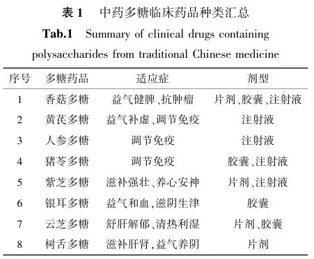 近年来,中药多糖因其较低的毒副作用,多样的药理活性以及广阔的应用领域[7],逐渐成为研究热点。但是中药多糖提取纯化工艺的不稳定以及药理活性研究的滞后,导致中药多糖的应用推广困难,因此,本文锚定中药多糖最新的药理活性研究,对其抗肿瘤、免疫调节、血糖代谢、肠道菌群、抗氧化等主要药理活性及作用机制进行了阐述,并汇总整理了目前临床常用的中药多糖制剂(表1)。.jpg)