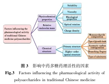 中药多糖自身理化性质对其药理活性的影响主要包括以下5方面,即多糖的溶解性、粘度、流变性、旋光度及电荷密度[48-52]。3.2 多糖的相对分子量