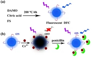 2.探针Cr3+@DFC荧光处于“off”状态,当青霉素(PG)存在时,Cr3+@DFC的荧光信号得到回升,荧光呈“on”状态,基于荧光“开-关-开”的策略,建立了一种的快速、高灵敏检测PG的分析方法;