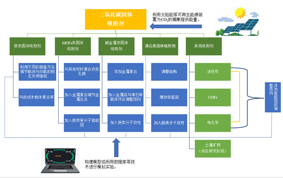 1.调研了近几年胺类固体吸附剂、金属有机框架固体吸附剂、碱金属固体吸附剂、沸石类吸附剂等常见的及新型吸附剂最新的改性研究现状;