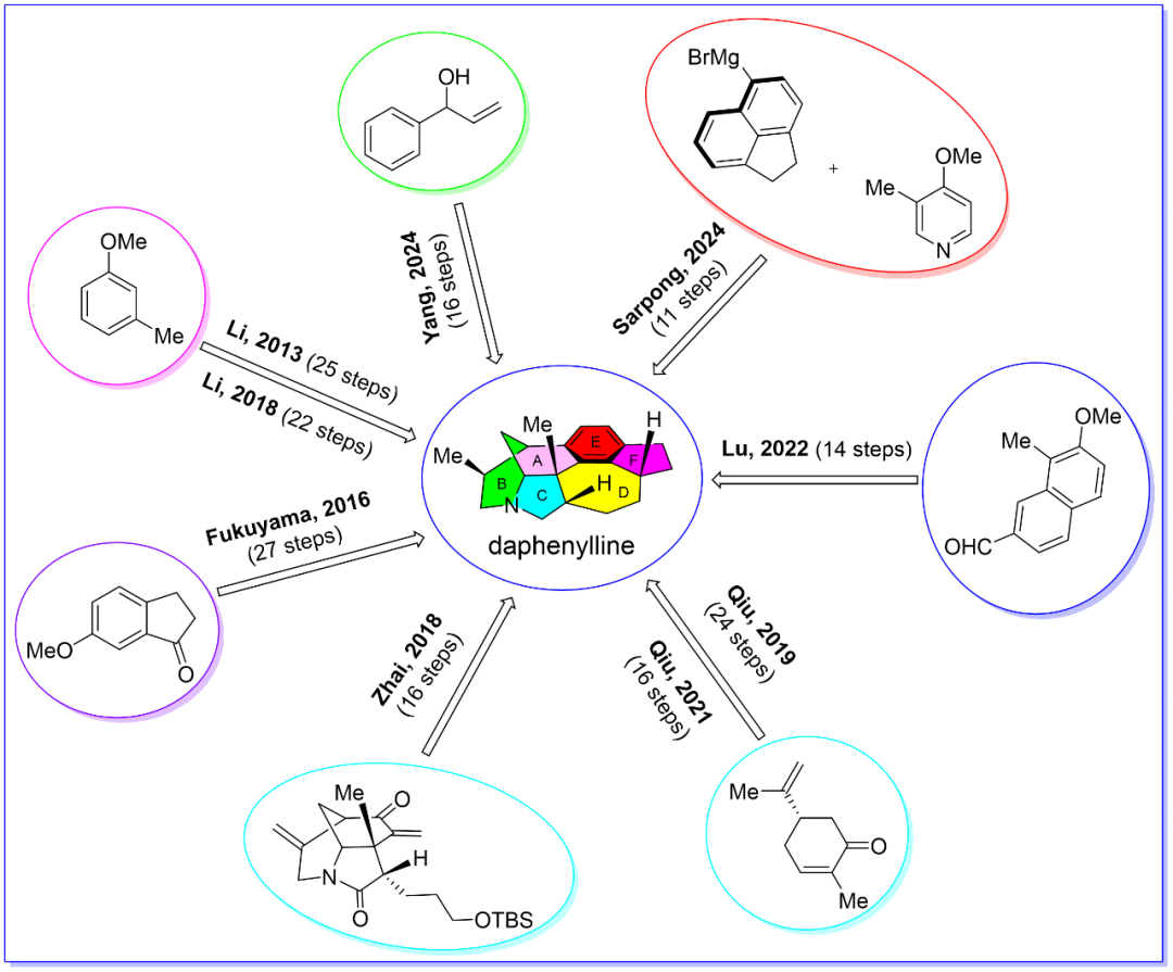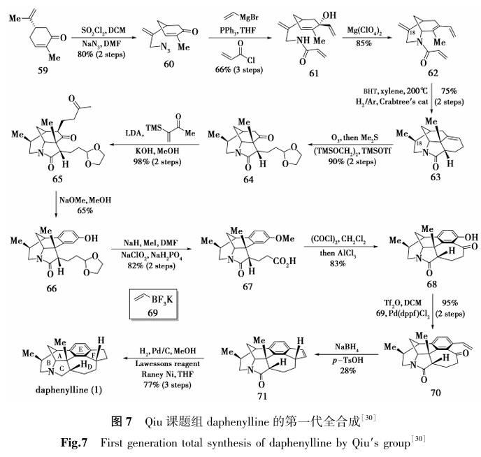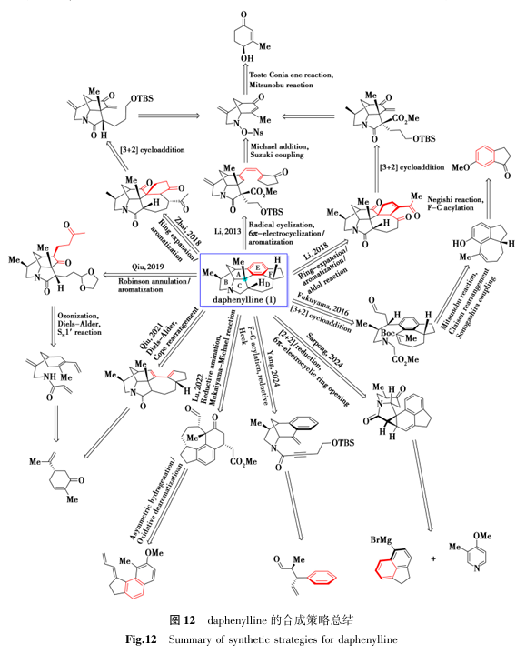 1.本文系统归纳总结了虎皮兰生物碱daphenylline近十年来的全合成研究工作,介绍并分析全合成路线与策略。为未来虎皮楠生物碱家族以及其他类似天然产物的合成研究,提供参考和借鉴;