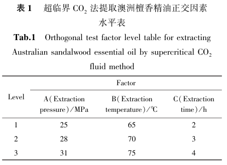在单因素试验基础上,选择萃取压力(A)、萃取温度(B)、萃取时间(C)作为超临界CO2提取法影响因素,进行三因素三水平正交试验(表1),以精油得油率为考察指标并导入到“正交设计助手II V3.1”软件中,采用直观分析方式考察超临界提取方法的最佳提取条件。.png)