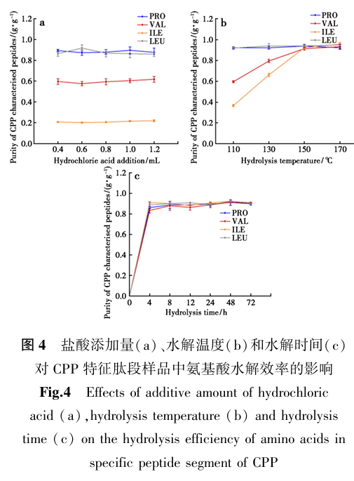 2. 不仅重点表征特征肽段原料结构信息,还优化肽段氨基酸水解条件,并讨论空间位阻对水解效率的影响;