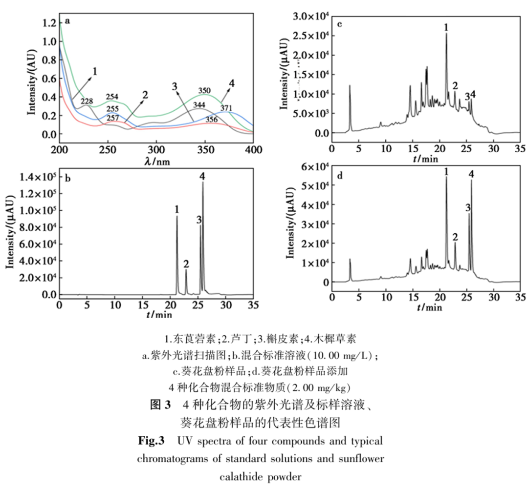 【热点文章】高效液相色谱法同时测定葵花盘粉提取物中的东莨菪素、芦丁、槲皮素和木樨草素