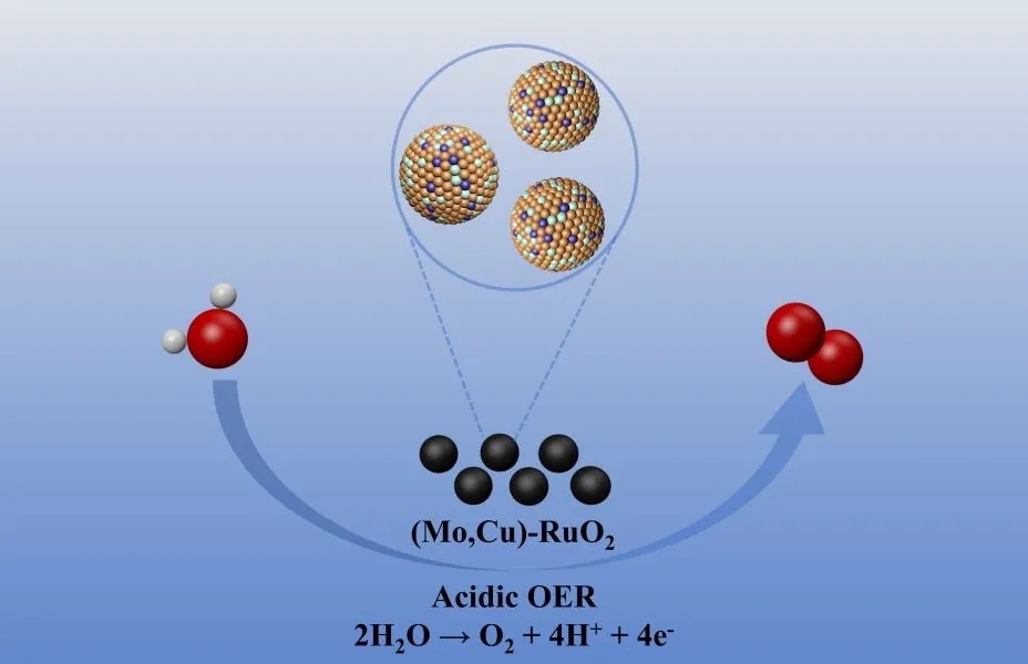 1.基于Mo/Cu-MOFs前驱体离子交换法的双金属协同掺杂策略,成功制备出具有电子协同调控效应的(Mo,Cu)-RuO2催化剂。