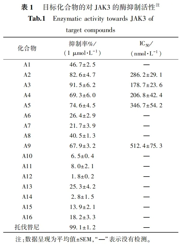 2.2 目标化合物对JAK3的抑制活性分析