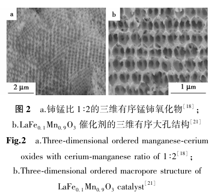 对于负载型催化剂,采用大比表面、多孔性的载体材料可使得催化活性组分包括助剂组分都能得到很好的分散,有利于反应物分子的吸脱附,同时可使得活性相的结构得到优化,进而产生优异的催化氧化性能。目前常用的作为NO氧化载体的是Al2O3和TiO2材料。