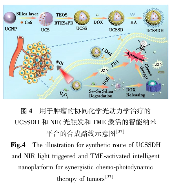 REEs-UCNPs组织穿透能力强,可吸收低能光子发射高能光子。凭借此特性,REEs-UCNPs可载带药物实现药物在体内深层组织穿透。2 以REEs-UCNPs为载体的肿瘤药物传输与其他治疗技术的联合应用
