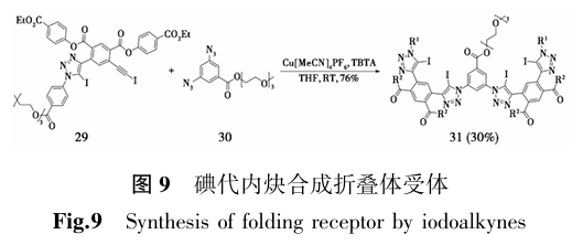 2019年,新加坡材料工程研究所Beer等[13]报道,将碘化亚铜替换为六氟磷酸四乙腈铜,可将CuAAC反应用于构建大环烷烃类复杂结构(图9)。