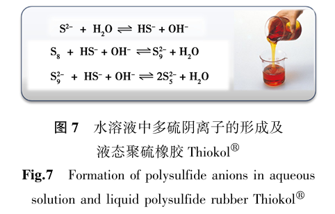 自从作为改性剂在橡胶工业发挥重要作用后,硫磺在新材料领域越来越受到关注,尤其是通过多硫阴离子和多硫自由基两种策略可对聚合物进行化学改性。硫磺与硫化钠水溶液反应可以在室温下形成多硫阴离子(Sn2-),这也是硫在自然界中的一种稳定存在形式(图7)。