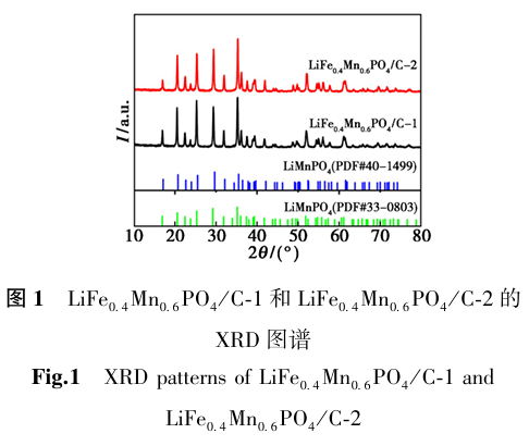 1.2.2 LiFe0.4Mn0.6PO4/C复合材料的表征及电化学性能测试