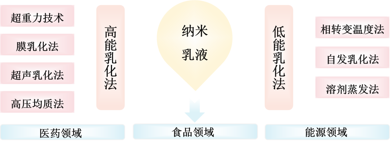 本文系统梳理了有关纳米乳液制备的全面信息,包括最新的方法、物理化学性质表征,并讨论了在医药、食品、能源领域的应用,旨在为纳米乳液的后续研究提供了启发与指引。