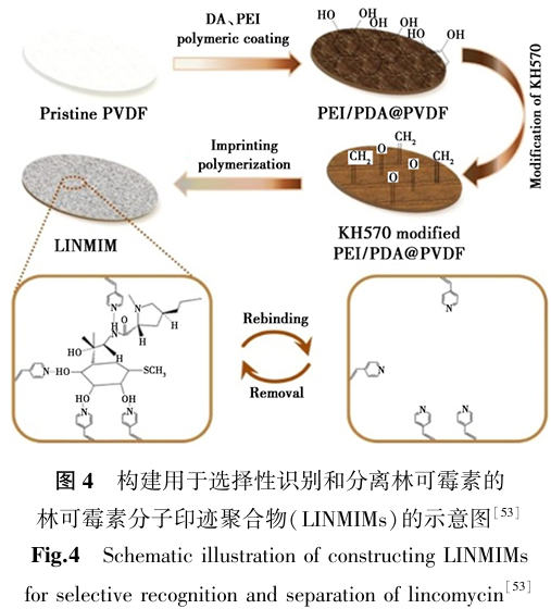 Dong等[53]采用相转化法制备了林可霉素的印迹膜,用以检测牛奶中的林可霉素含量。