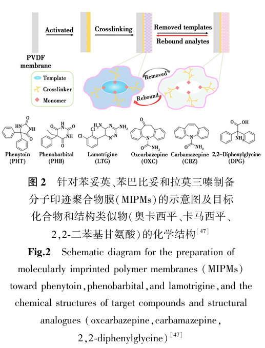 Zhao等[47]基于表面印迹和自由基聚合技术,以聚偏二氟乙烯(PVDF)膜为支撑体、PHT为单模板,设计优化并制备了新型MIPM,满足了PHT、PHB和LTG在不同基质中的萃取应用。