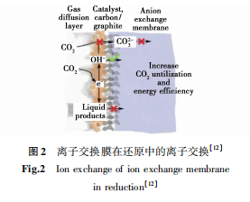 二氧化碳电还原中阴离子交换膜AEM在碱性条件下具有高选择性和高反应速率,此外在阴极侧形成的高pH环境允许使用非贵金属催化剂。但在碱性环境中的化学稳定性不足、阴离子产物交叉和电导率的不足,界面电阻损失,严重影响了实际操作。可对AEM的特定结构和基团进行合理设计,通过设计新型聚合物主链,膜的改性,以及优化阳离子官能团上的结构等设计等手段来进行调控以实现其电导率、稳定性等性能的提高。