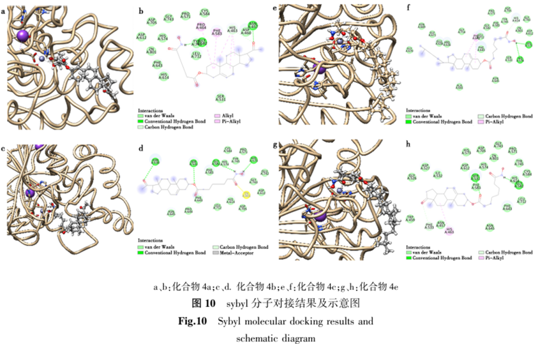 2. 作用机制深入阐释:通过分子对接研究,揭示了化合物与HDAC酶的结合模式差异:部分依赖疏水相互作用增强结合亲和力,部分通过与锌离子结合发挥催化抑制潜力。首次明确了甾核结构与连接链长度对活性的协同调控关系,为理性药物设计提供了理论依据;