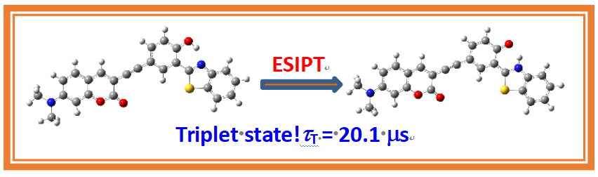 传统的三重态光敏剂主要依赖,在发色团的中心引入重原子或过渡金属来获得三重态。但该方法具有高毒性、高成本以及合成困难等缺点。近年来,电荷复合过程促进系间窜越产生机理(SOCT-ISC)已成为获得不含重原子的三重态光敏剂的主要方法,由于其具有较强的溶剂依赖性,在某些方面限制了其应用。因此,能否找到一种新的获取三重态的方法,成为该领域中亟待解决的问题。ESIPT过程中能够有效地产生cis-酮式结构的三重激发态,以此为理论依据,能够有效地设计具有可见光强吸收能力,且不含重原子的有机三重态光敏剂。