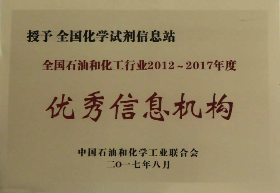 2017年8月22日,在第四届石油和化工行业信息机构考评总结大会上,全国化学试剂信息站获得“全国石油和化工行业示范信息机构”、“全国石油和化工行业优秀信息机构”等多项荣誉称号,并获准升级为“全国化学试剂信息总站”。