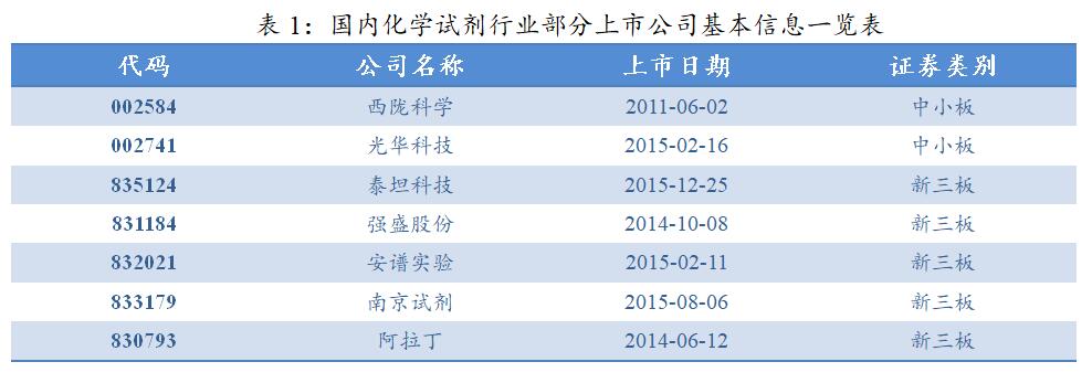 附件1:国内化学试剂行业部分上市公司年报摘录一览