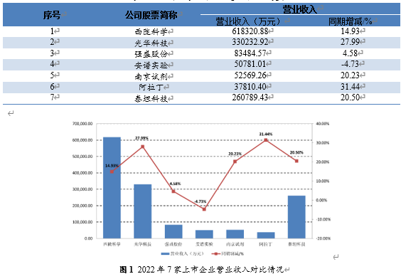 国内化学试剂行业部分上市公司2022年营收情况明朗,公司相关基本情况见表1。