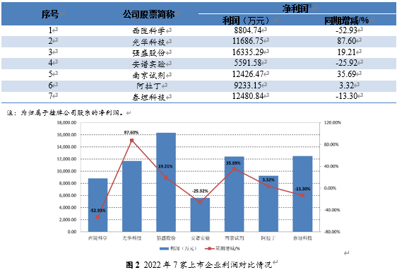 另外,西陇科学和安谱实验净利润较上年同期出现一定程度的下降。西陇科学净利润较上年同期下降52.93%,年报披露因转让子公司股权产生的投资收益较去年同比降幅较大有关。安谱实验净利润较上年同期下降25.92%,主要系受疫情影响营收减少所致。