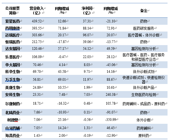 附2:国内体外诊断试剂、生物医药研发等部分上市公司的2022年报一览