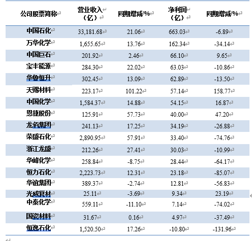 化工行业是国民经济的基础性产业,关乎各行各业的发展。2022年受全球经济萧条、能源原料成本高等因素影响,部分企业的盈利遭受冲击。根据表中年报数据显示,2022年化工上市公司营业收入、净利润最高的是中国石化,净利润达663.03亿元,同比减少了6.89%;万华化学净利润居第二,为162.34亿元,同比减少了34.14%;中国巨石净利润居第三,为66.10亿元,同比增加9.65%。几大民营巨头全年营业收入虽然实现不同程度增长,但归属于上市公司股东的净利润均大幅下降,增收不增利特点明显。