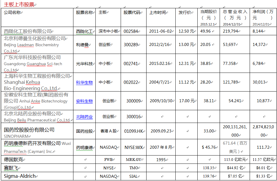 试剂行业相关的上市企业情况