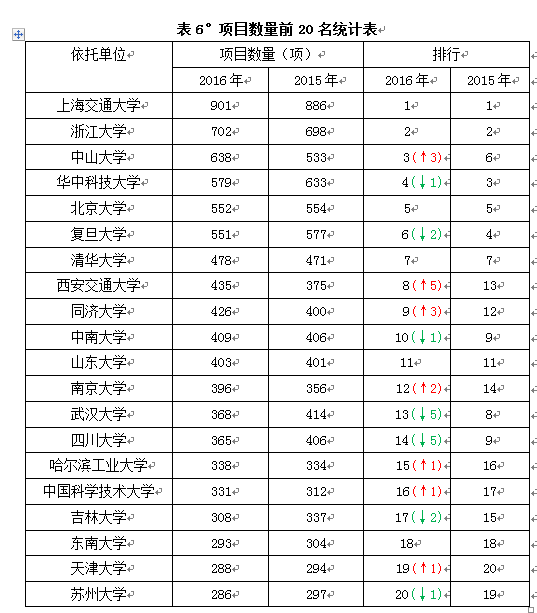2016年的受自然科学基金资助最多的单位依然是上海交通大学,总项目数901项,单项资助金额从4万元到1050万元不等,平均56.32万元。表3按学部对其项目进行分类,可见上海交大在医学科学领域拥有较大优势。