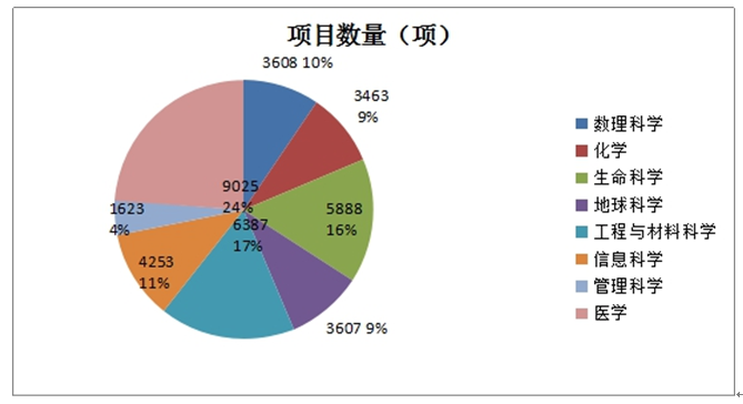 导读:2016年8月17日,国家自然科学基金委员会发布2016年度国家自然科学基金申请项目评审结果的通告,通告显示:2016年3月1日至3月20日项目申请集中接收期间,国家自然科学基金委员会(以下简称自然科学基金委)共接收项目申请172843项,经初步审查受理169832项。根据《国家自然科学基金条例》和国家自然科学基金相关类型项目管理办法的规定,以及专家评审意见,决定资助面上项目16934项、重点项目612项、创新研究群体项目38项、优秀青年科学基金项目400项、青年科学基金项目16112项、地区科学基金项目2872项、海外及港澳学者合作研究基金项目135项、重点国际(地区)合作研究项目105项、国家重大科研仪器研制项目(自由申请)85项、部分联合基金项目(NSAF联合基金、天文联合基金和钢铁联合研究基金)116项,合计37409项。其余项目正在评审过程中。本文对2016年国家自然科学基金的数据分析进行了归纳和整理。