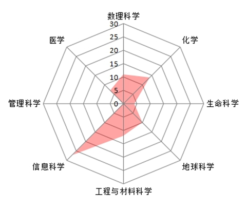 根据图4所示的项目中学科关联程度可见,设备研发对工程与材料科学,信息科学以及数理科学的运用最频繁。这些领域的进展将对未来的科研活动大有裨益。