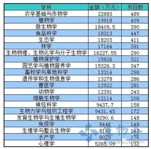 值得关注的是今年的第三位“微生物学”供获得18409.5万元的资金,在被“农林植物”承包的榜单中占得了一席之地。
