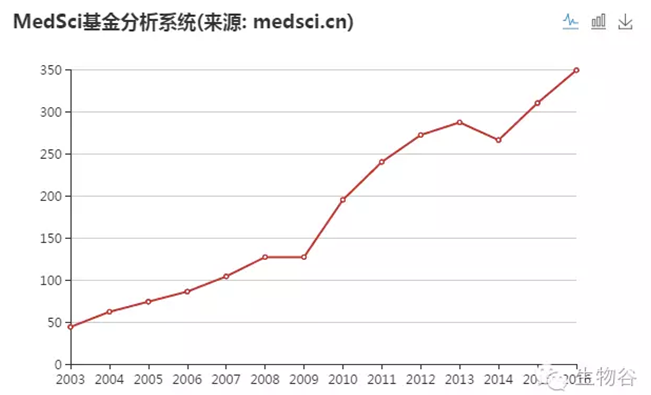 从近几年的趋势图可以看出,微生物学立项涨幅明显,未来几年内微生物学将仍然会是热门研究领域。