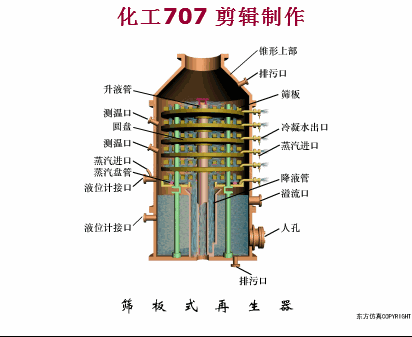 铜液吸收气体中的一氧化碳、二氧化碳、硫化氢后,从他底部流出,经减压阀减压后,送至回流塔底部,喷淋而下于再生器解吸出来的再生器逆流相遇。铜液由回流塔出来从下加热器的底部进入列管内,被关键的热铜液间接加热,沿升列管向上,进入中间还原器再进入上加热器。
