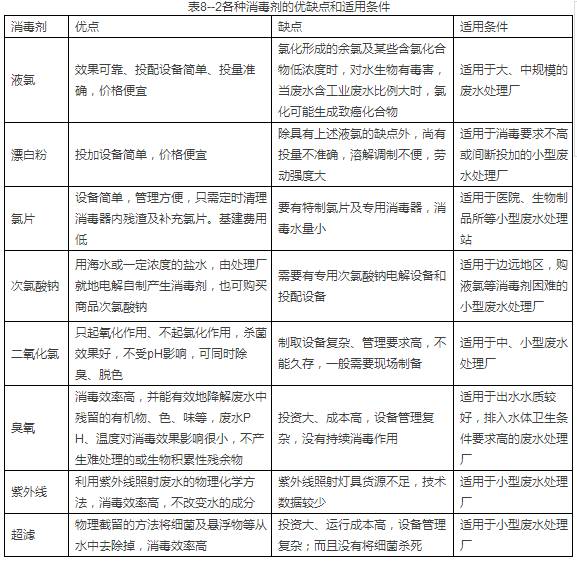 各种消毒剂的优缺点和适用条件见表8--2。参考此表,可以初步确定应该使用的消毒剂。