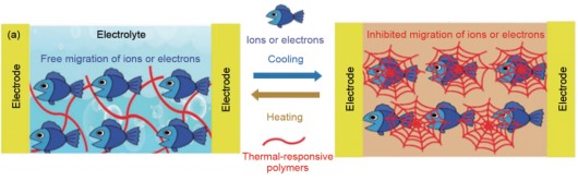 通过可逆的热响应聚合物来抑制电极之间的离子或电子传导以防止电化学存储设备的热失控
