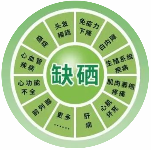 我国72%的土壤缺硒,导致农作物硒含量普遍不足,居民日均硒摄入量仅26~32微克,远低于推荐值60~400微克。长期缺硒与克山病、大骨节病、癌症高发密切相关。
