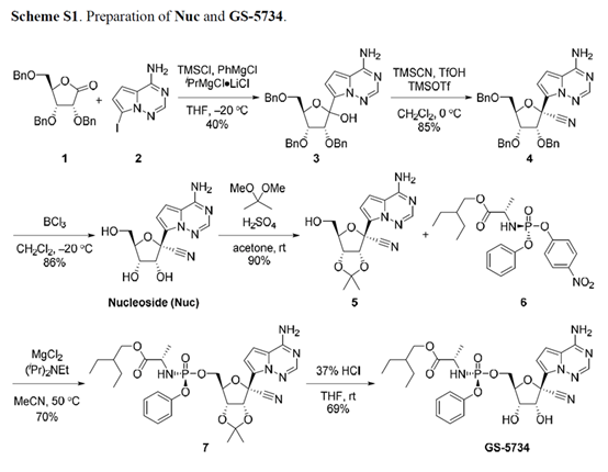 2016年Nature(Doi:10.1038/nature17180)报道了瑞德西韦的第二代合成方法。