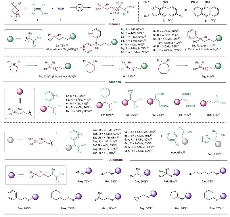 题目:Hydroxyl Radicals Unlock Strong C(sp3)─Si Bonds: Photocatalytic Alkylation and Silacycle Engineering