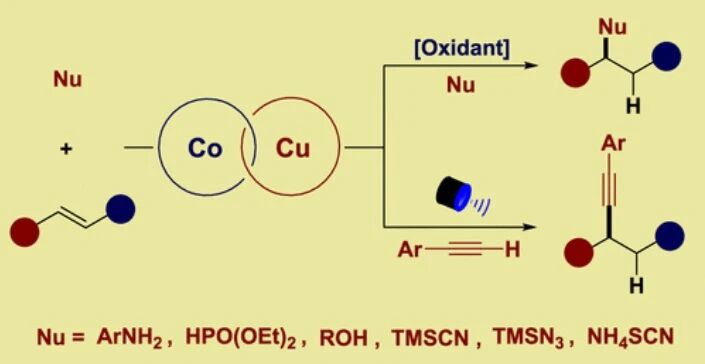 题目:Bimetallic Relay Catalysis for Radical Hydrofunctionalization of Alkenes with Diverse Nucleophiles
