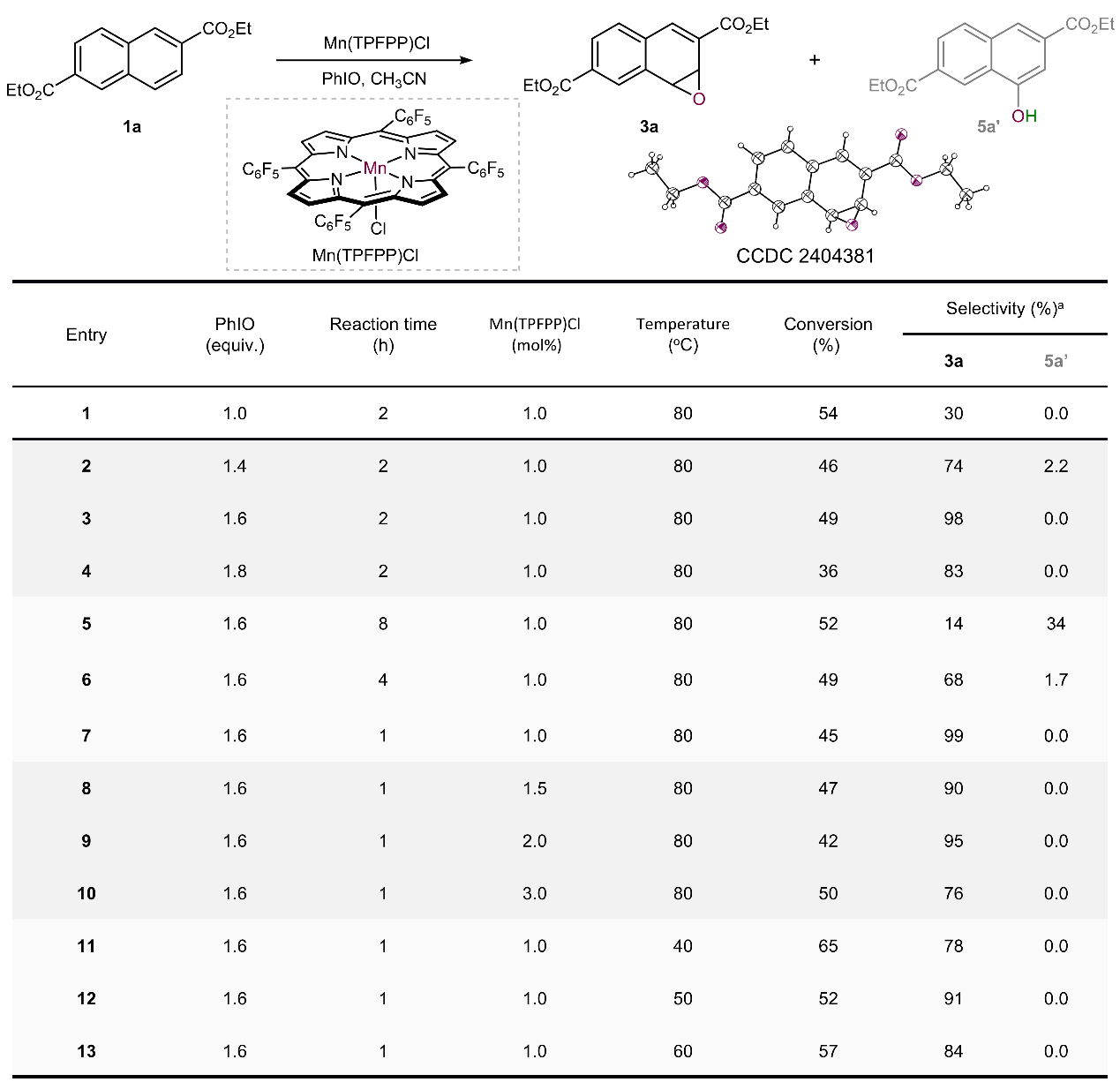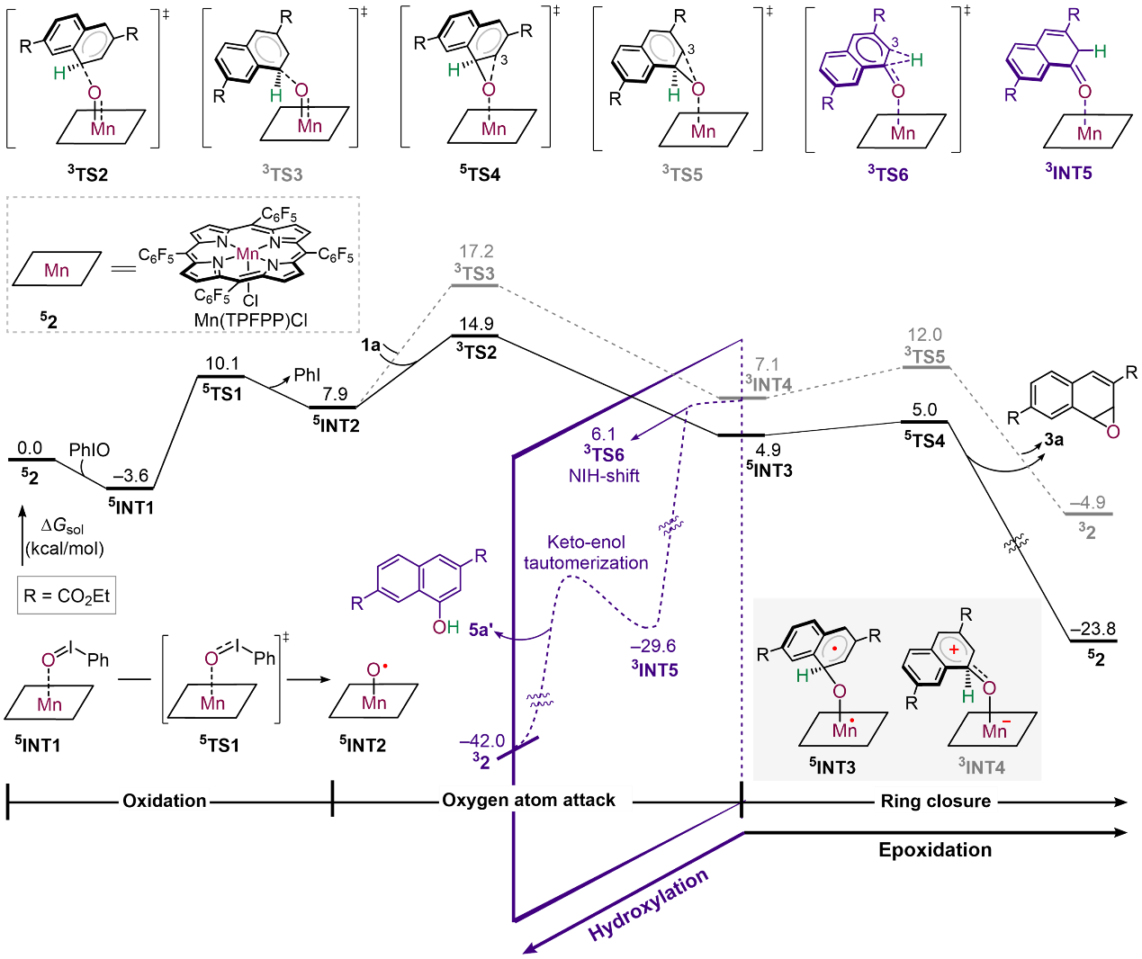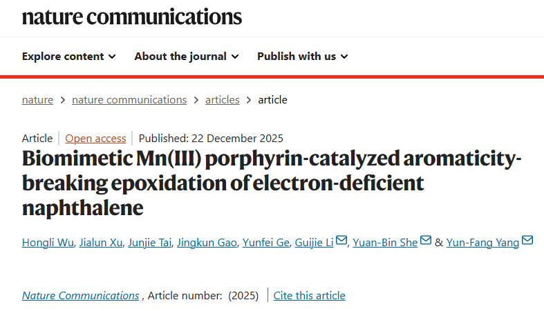 题目:Biomimetic Mn(III) porphyrin-catalyzed aromaticity-breaking epoxidation of electron-deficient naphthalene