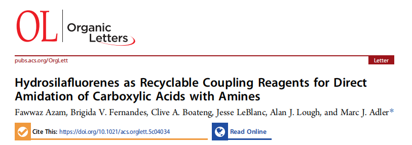 【试剂前沿】加拿大多伦多都会大学M. J. Adler:氢硅芴作为羧酸与胺直接酰胺化的可回收偶联剂