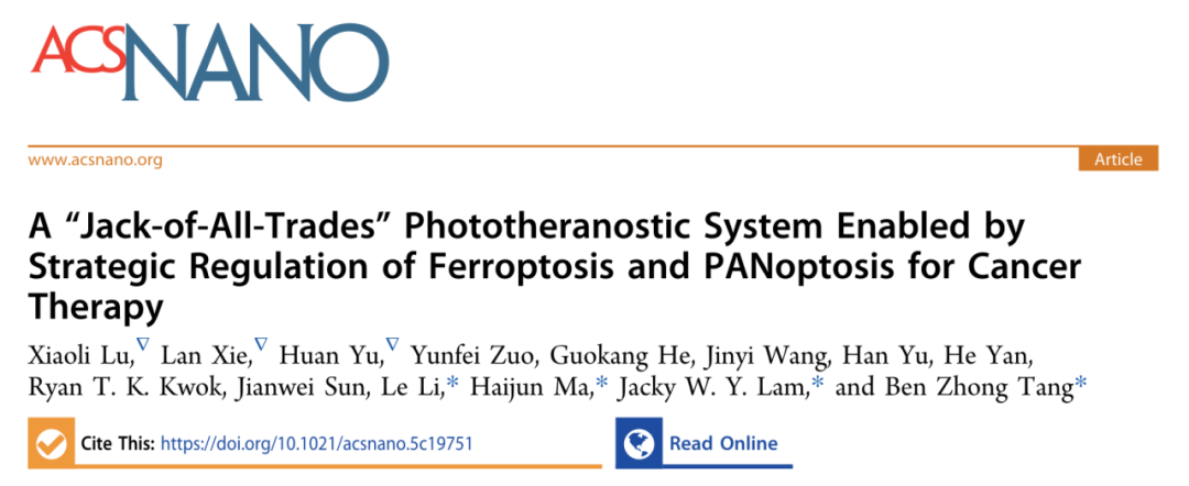 在机制上,该研究首次在该类光诊疗体系中揭示了铁死亡与泛凋亡(PANoptosis)的协同调控作用。该工作不仅为发展高性能、多功能的有机光诊疗试剂提供了创新的分子设计思路,也通过深入的机制阐释,推动了NFA材料在肿瘤精准治疗领域的应用前景,为其未来的临床转化奠定了重要基础。