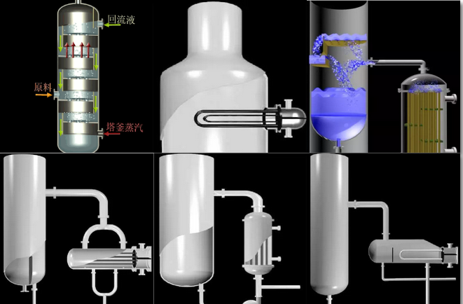 在蒸馏操作中,常常会用到再沸器。一般情况下,我们把再沸器分为交叉流和轴向流两种类型。在交叉流类型中,沸腾过程全部发生在壳程,常用的形式有釜式再沸器、内置式再沸器和水平热虹吸再沸器。在轴向流类型中,沸腾流体沿着轴向流动,最常用的形式为立式虹吸再沸器和强制流动型再沸器。