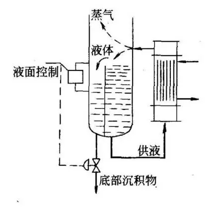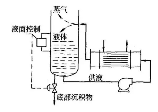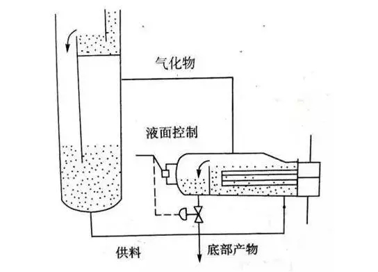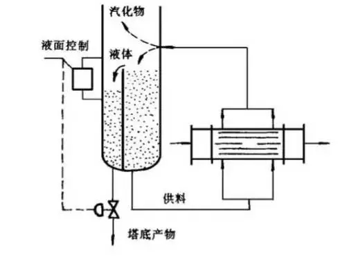 强置循环式再沸器依靠泵的外加机械能维持强制循环,因而循环速度便于控制和调节,物料停留时间短,其传热和压降均可按强制对流进行。适用于高黏度、热敏性物料,有少量固体悬浮液和长显热段和低蒸发比的高阻力系统。