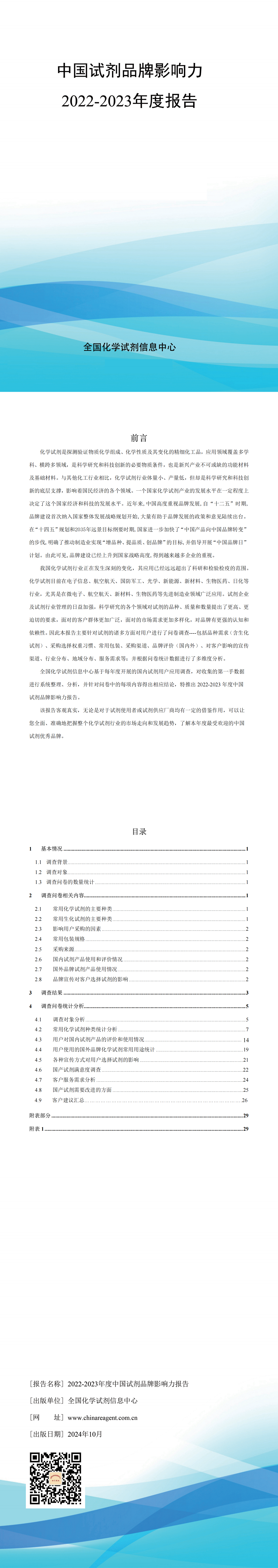 更详尽的分析内容和调查数据,请参阅全国化学试剂信息中心编纂的2022-2023年度《中国试剂品牌影响力年度报告》。