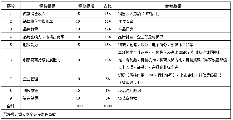 1)试剂企业的综合实力:包括试剂的销售额、品种数量、品牌影响力、市场占有率和服务能力(物流、电子商务、仓储等);